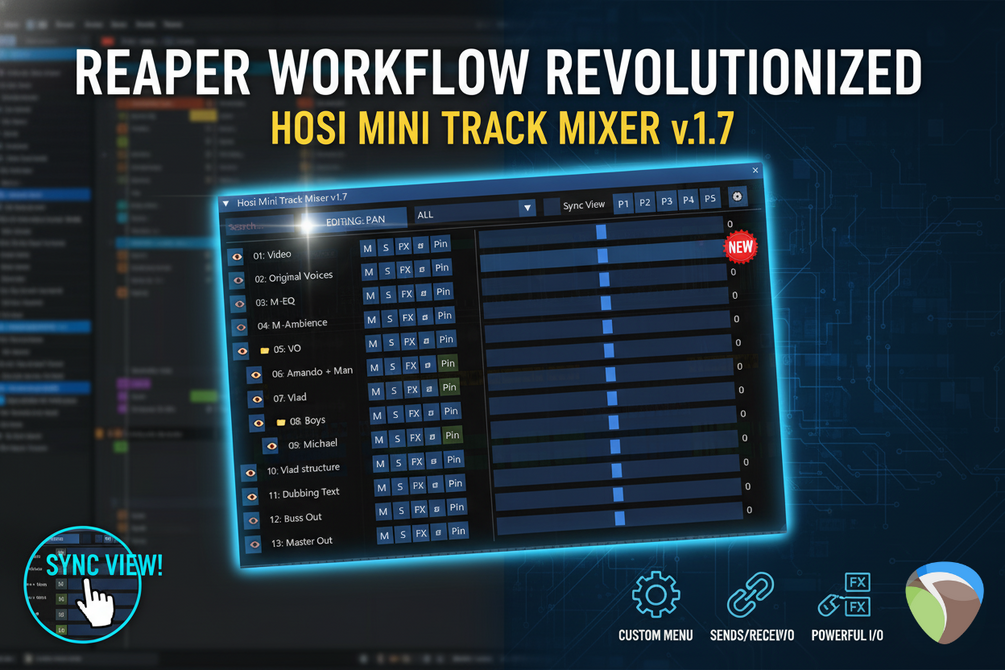 We'll dive into the Hosi Mini Track Mixer, a compact yet feature-packed tool that gives you control over everything from Volume, Pan, Sends, and Receives, to pinning VST/FX parameters directly onto the interface. Let's see how this script can help you mix faster, more efficiently, and stay focused on your creativity.